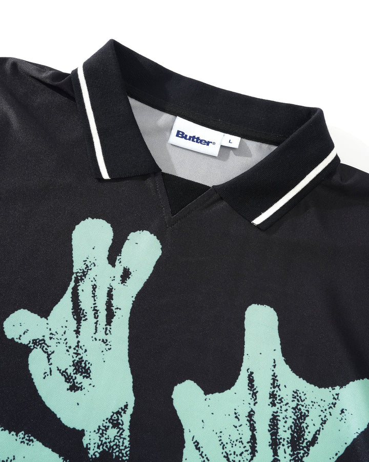 Jacquard-Streifenkragen mit geripptem V-Ausschnitt