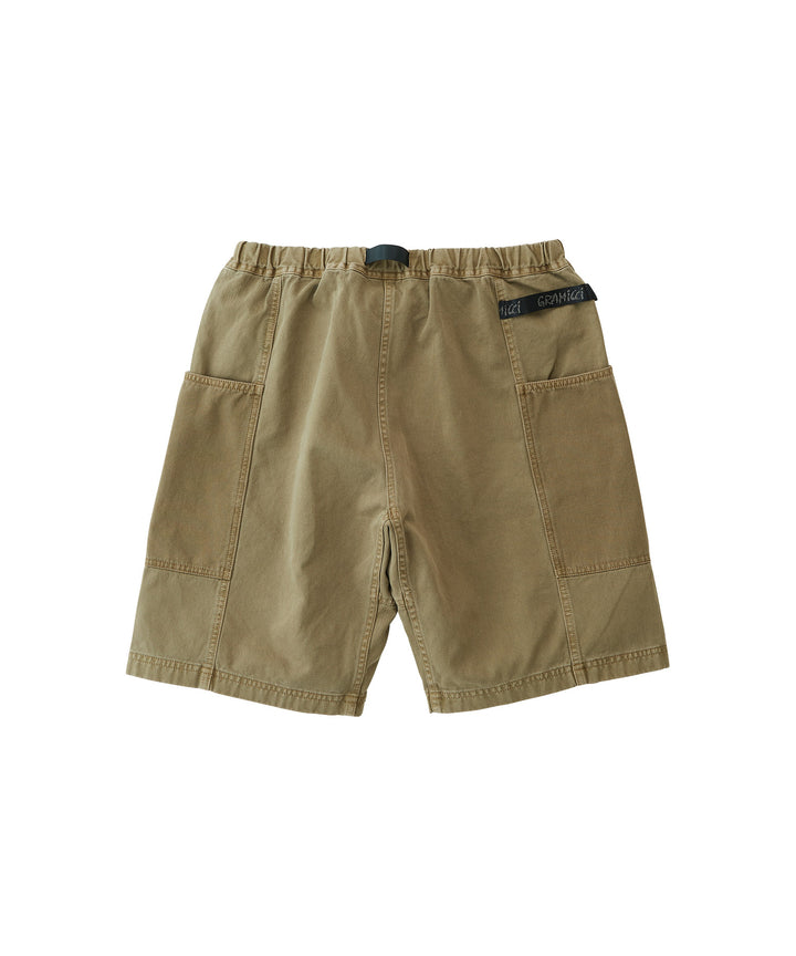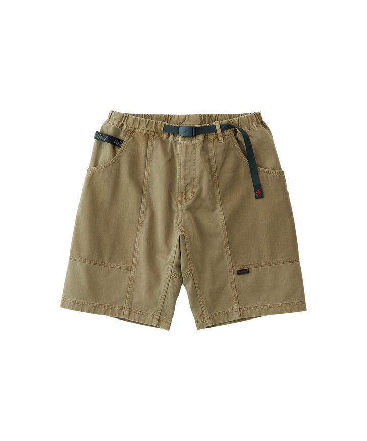 These shorts are able to hold gadgets to suit modern lifestyles, while maintaining the functionality during climbing that serves as the brand's roots. Highlighted by large pockets extending from the front to the back, the silhouette combines a comfortable looseness with a smart appearance. Tough canvas is used for these pockets, while the contrast between the two types of materials through garment dyeing is another notable feature. Also, the D-ring with the brand logo on the right side is useful in the outdoors and in the city, as it can hold keys and bottles. They are made of 100% organic cotton twill with high durability, tension, and stiffness that can even withstand strenuous movement and dyed to give character to their appearance.