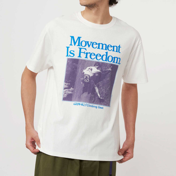 Soft t-shirt with signature Gramicci slogan "Movement is Freedom"