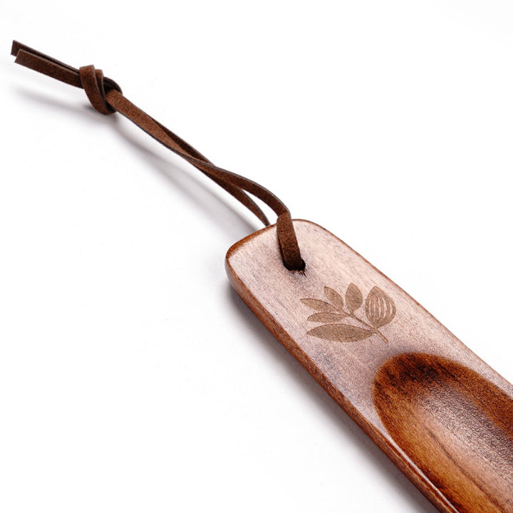 WOODEN SHOEHORN DOUBLE AS INSCENT BURNER 16 x 4 CM LEATHER STRING PLANT LOGO ENGRAVING