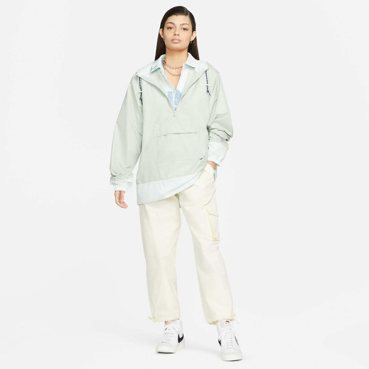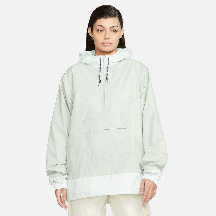 Einfach bei Bedarf rausholen und anziehen. Der Nike SB Anorak ist eine wasserabweisende Schicht, die sich in einem kleinen Beutel verstauen lässt, den du einfach an deinen Gürtelschlaufen oder deinem Rucksack befestigen kannst. Dank Kordelzug am Saum, Viertelreißverschluss und Kordelzug an der Kapuze kannst du die Jacke entweder locker tragen, um die Luftzirkulation zu verbessern, oder schließen, um dich bei schlechtem Wetter vor den Elementen zu schützen.