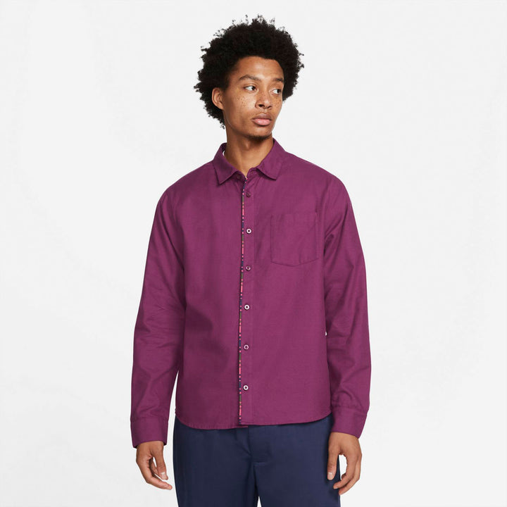 Das Nike SB Oberteil ist ein bequemer Klassiker mit besonderen Details. Es kombiniert superweiches Flanell-Material mit Streifen unter der Knopfleiste für einen dezenten Kontrast, der sichtbar ist, wenn die Knöpfe geschlossen sind.