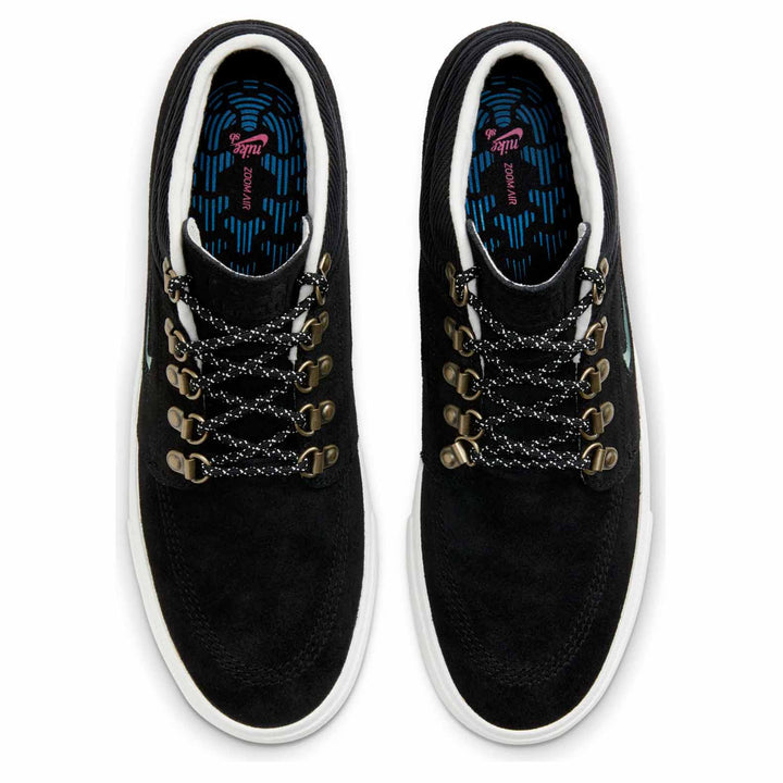Der vom pazifischen Nordwesten inspirierte Nike SB Zoom Stefan Janoski Mid Premium kombiniert Premium-Wildleder mit Outdoor-Details wie einem Cordkragen und Schnürsenkel-Ösen im Boot-Stil.