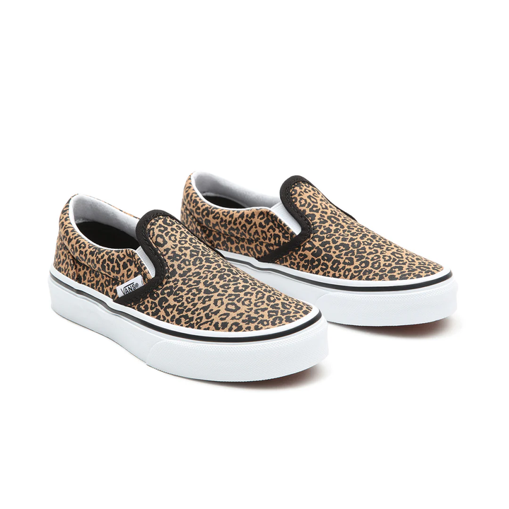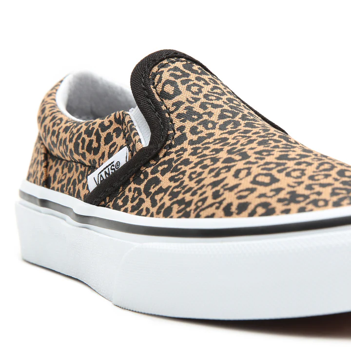 Der Vans Classic Slip-On „Leopard“ kombiniert einen ikonischen Skate-Style mit einem auffälligen Animal-Print. Dank Slip-On-Design bietet der Schuh schnellen Einstieg, hohen Komfort und einen starken Streetwear-Look für jeden Tag.